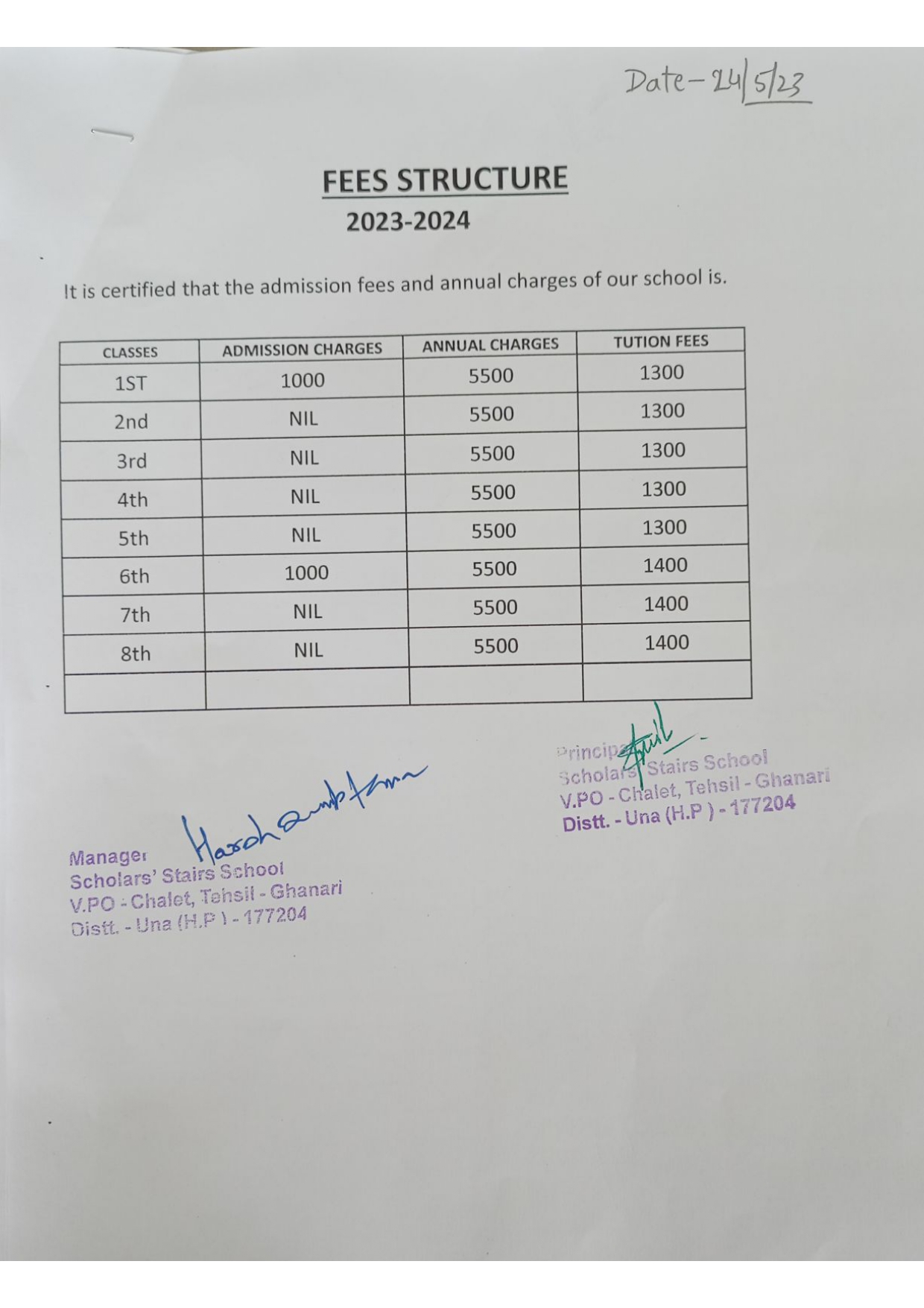 Fee Structure session 2023- 24(PDF)