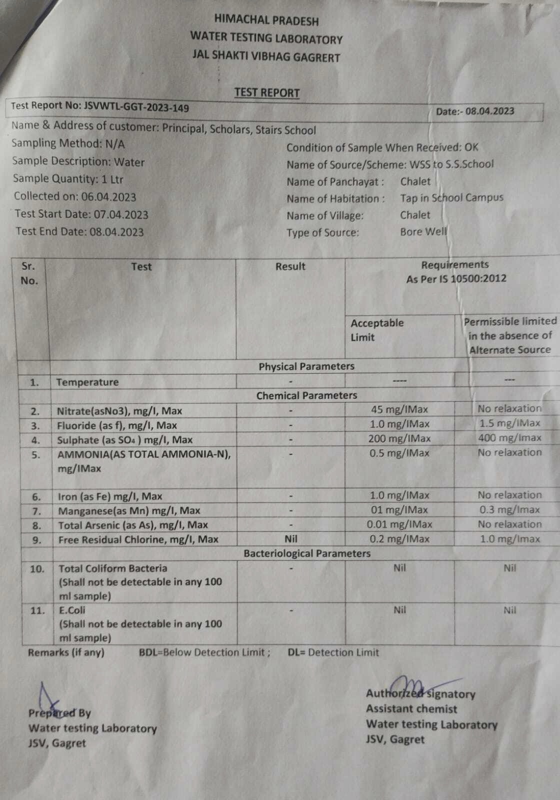 Water Test Report